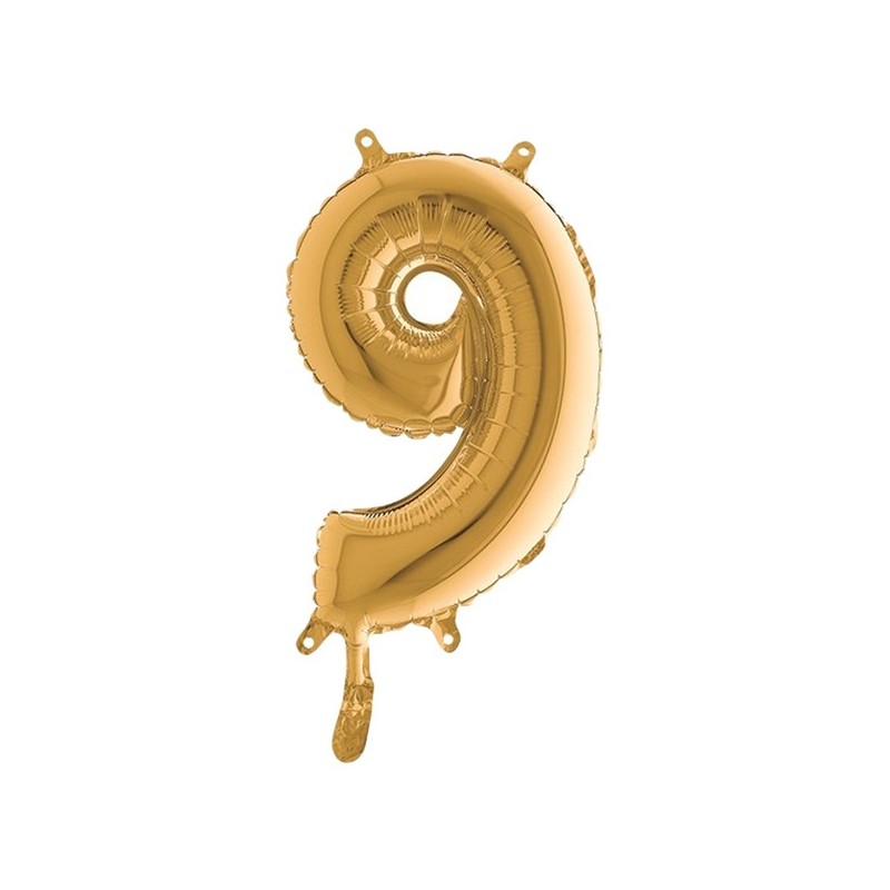 Numero h. 36cm, realizzato in mylar foil metalizzato gonfiabile ad aria attraverso la bocchetta alla base. Cannuccia inclusa nella confezione.