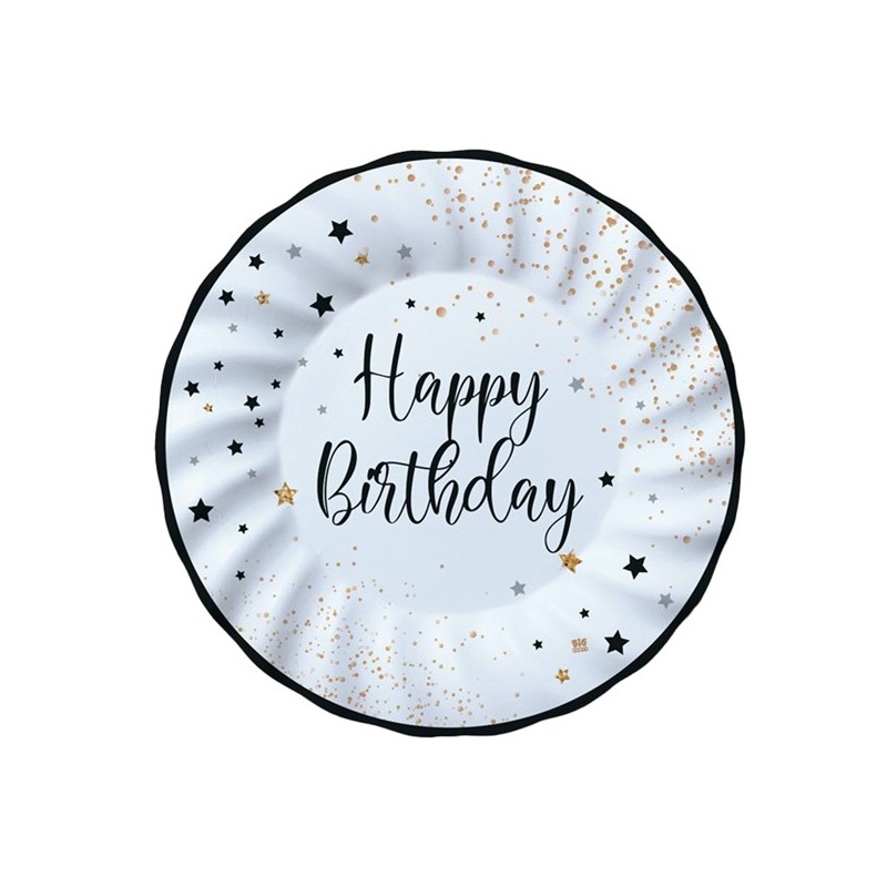 Piatti in carta con scritta Happy Birthday. Diametro Ø25cm.