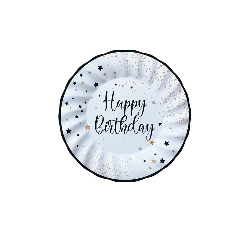 Piatti in carta con scritta Happy Birthday. Diametro Ø20cm.
