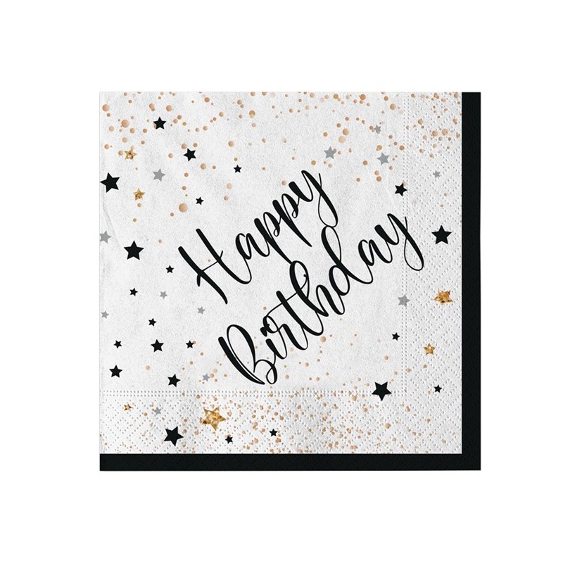 Tovaglioli in carta con scritta Happy Birthday. Dimensioni: 33x33cm