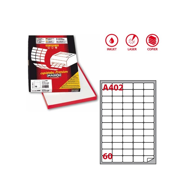 Scatola da 100fg da 21x29,7cm di etichette adesiva permanente bianche. Etichette con angoli tondi.