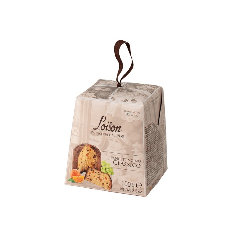 Panettoncino tradizionale gusto Classico con uvetta e arancia in astuccio 100gr.