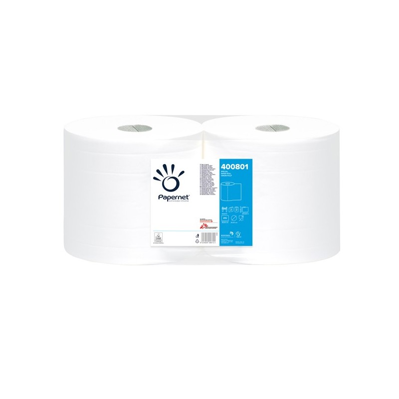 Bobina asciugatutto industriale 100% in pura cellulosa a 2 veli 19,5g. Bianca liscia 815 strappi. Dimensioni bobina: Ø 25cm - H25,8cm - Lunghezza totale 293mt. Diametro anima: 6cm. Idoneo al contatto con gli alimenti.