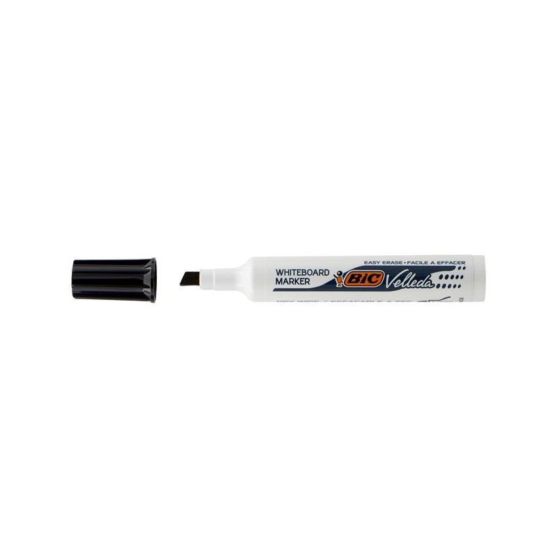 Pennarello per lavagne cancellabili. Inchiostro a base di chetone. Si cancella perfettamente senza lasciare segni. Cappuccio del colore dell’inchiostro con blocco di sicurezza. Fusto jumbo in plastica. Punta scalpello con larghezza del tratto da 3,3-4,6mm.