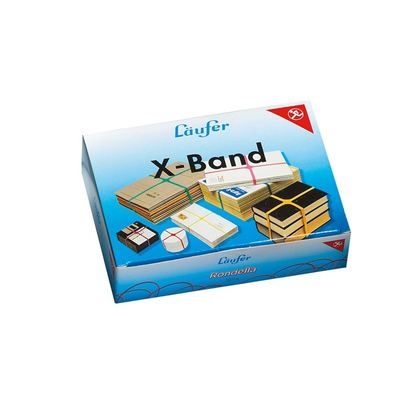 Scatola da 100gr di elastici X-Band in colori assortiti con diametro da 100mm - 150x11mm.