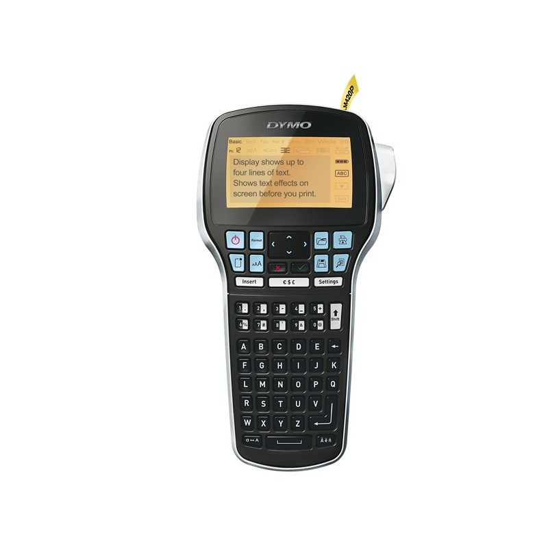 Stampante manuale con display ampio retroilluminato a 4 righe. 8 caratteri e 10 stili di testo. Evidenziatura del teso o sottolineatura. Tasti di funzione speciale per l'accesso ai segni di punteggiatura, simboli di valuta e altri simboli particolari. Memorizza fino a 10 etichette. Utilizza etichette D1 Dymo di larghezza 6, 9,12 e 19 mm. Software dymo label incluso(taglia-incolla codici a barre, immagini e loghi) Impiego in modalità autonoma con batteria agli ioni di litio (senza uso di adattatore)o con collegamento al PC o al MAC tramite porta USB® Batteria a rapida ricarica per l'uso in movimento Incluso nella confezione nastro D1 da 19mm + cavo caricabatteria