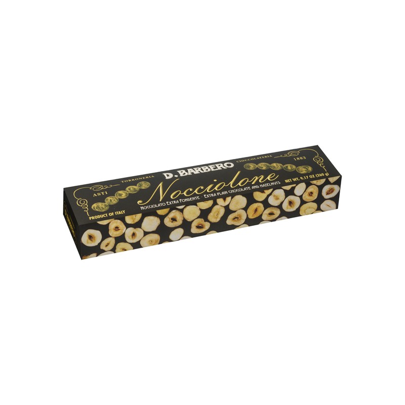 Nocciolone gusto fondente da 260gr con tipico cioccolato gianduja piemontese, ricavato solo da nocciole Piemonte IGP arricchito da nocciole intere tostate. Mantenere in luogo fresco e asciutto. Temperatura consigliata: 15-18°C.