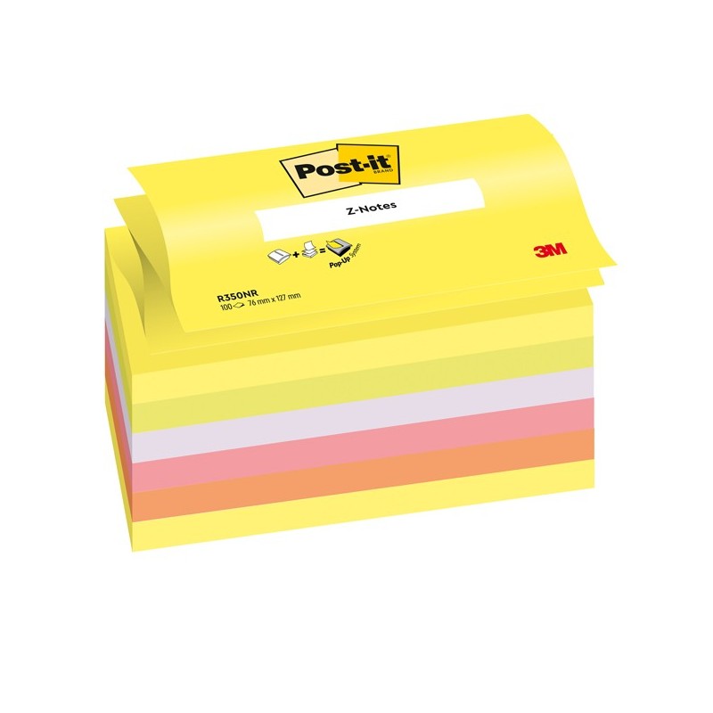 Incollatura a fisarmonica un foglietto tira l'altro. Utilizzabili con uno dei tanti dispenser per foglietti Post-it Z-Notes. Ogni blocchetto contiene 100 foglietti riposizionabili. Formato 76x127mm. Colore: assortiti neon.