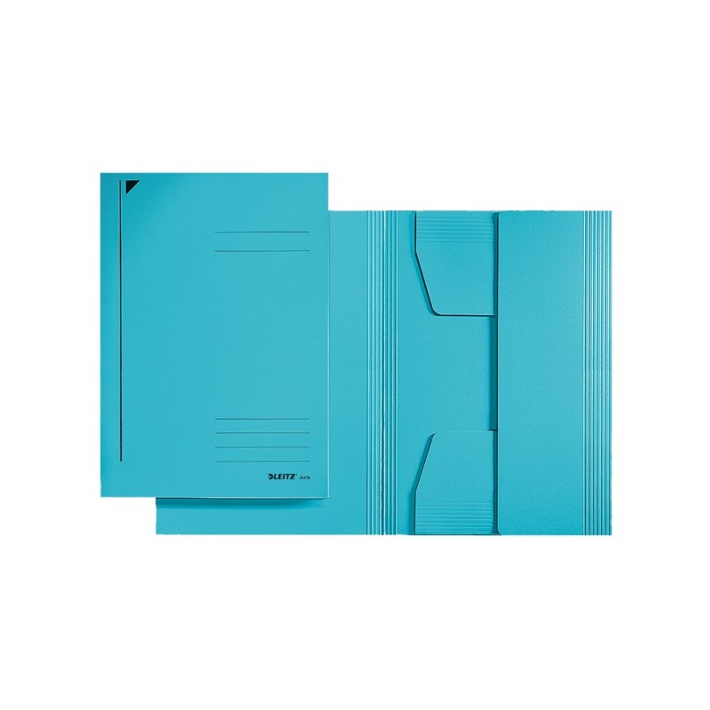 Cartelline 3 lembi Leitz in resistente cartoncino da 430g. Colori 3 (Blu, Rosso, Verde). Alette incollate. Cordonatura multipla delle alette. Cartoncino 430 gsm. Filigranatura indice frontale.