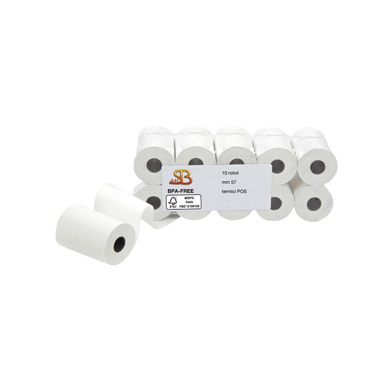 Rotolo per POS e carta di credito - 57 mm x 30 m - 55 gr - diametro esterno 50 mm - anima 12 mm - carta termica BPA free - Saba