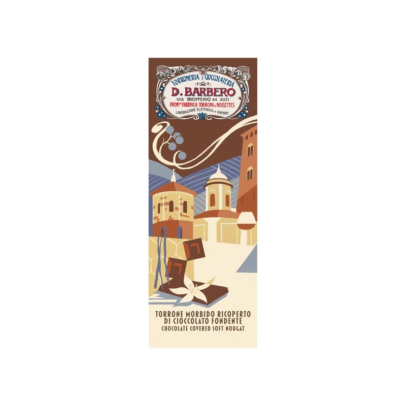 Tavolette di torrone Premiata Torroneria di torrone morbido ricoperto di cioccolato fondente con nocciole (170gr) in astuccio regalo.