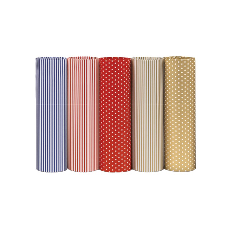 Carta da regalo 65gr/m2 riciclata al 100%. 12 fantasie assortite.