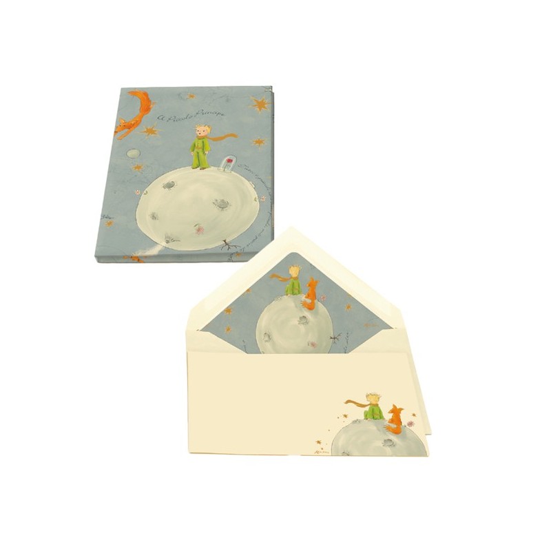 Biglietti e buste realizzate in carta color avorio con stampe a tema e decorazioni in oro in polvere.
