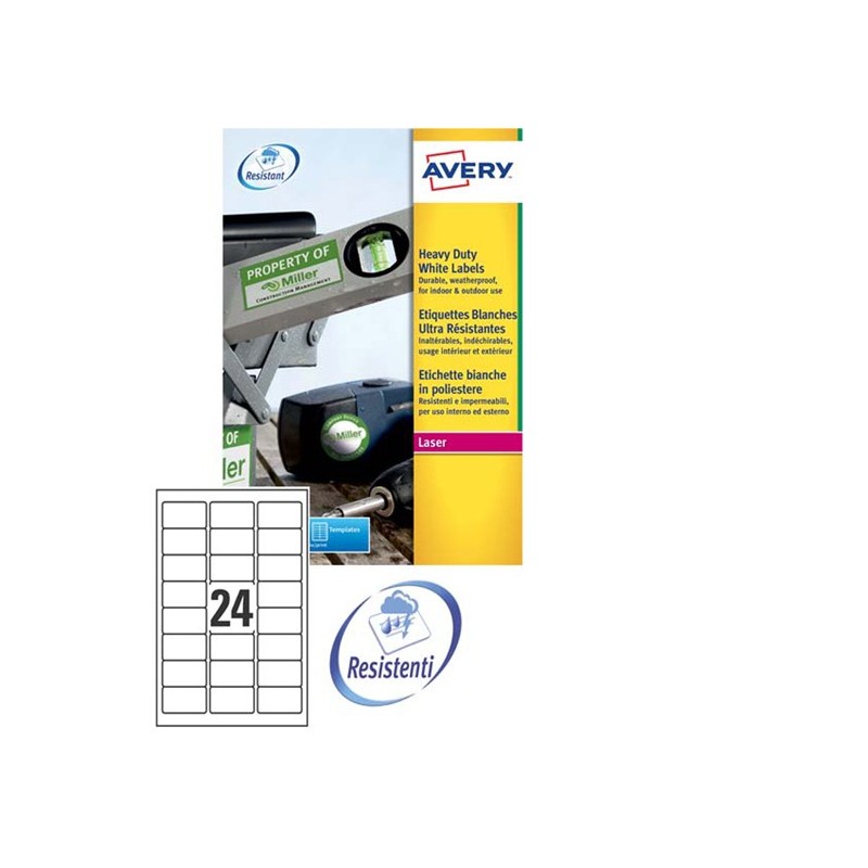 Etichette in poliestere bianco. Etichette in poliestere, resistono all'acqua, allo sporco, agli strappi e ai raggi UV, alle temperature da -20°C a +80°C. Possono essere applicate su metallo, vetro, plastica e legno. Ideali per uso esterno. Confezione da 20fg in A4.