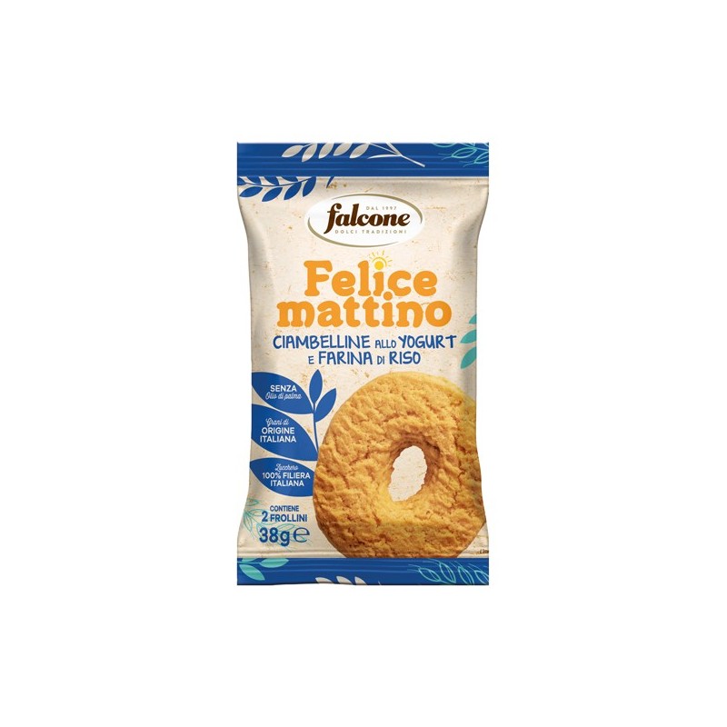 Ciambelline di farina di riso di ottima qualità e lo yogurt fresco e cremoso in pratica monoporzione da 2 biscotti (38 gr).