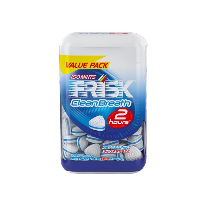 Astuccio di 150 microcompresse con zinco, con edulcoranti. Senza zucchero. Senza glutine. Azione efficace per oltre 2 ore di alito puro.
