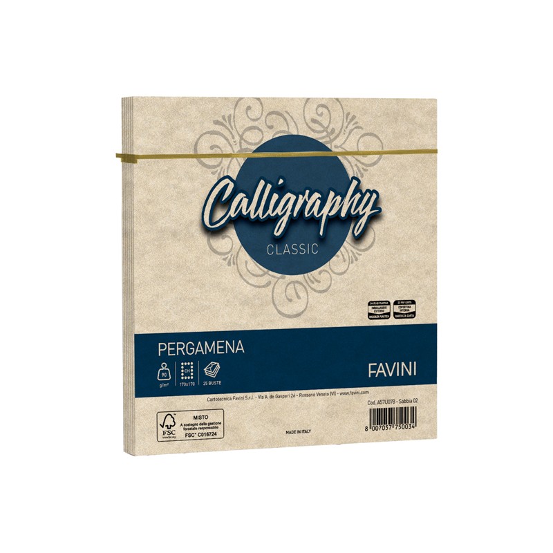 Busta adesiva con strip da 90 grammi in carta Calligraphy pergamenata formato 170x170mm.