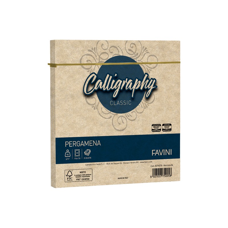 Busta adesiva con strip da 90 grammi in carta Calligraphy pergamenata formato 170x170mm.