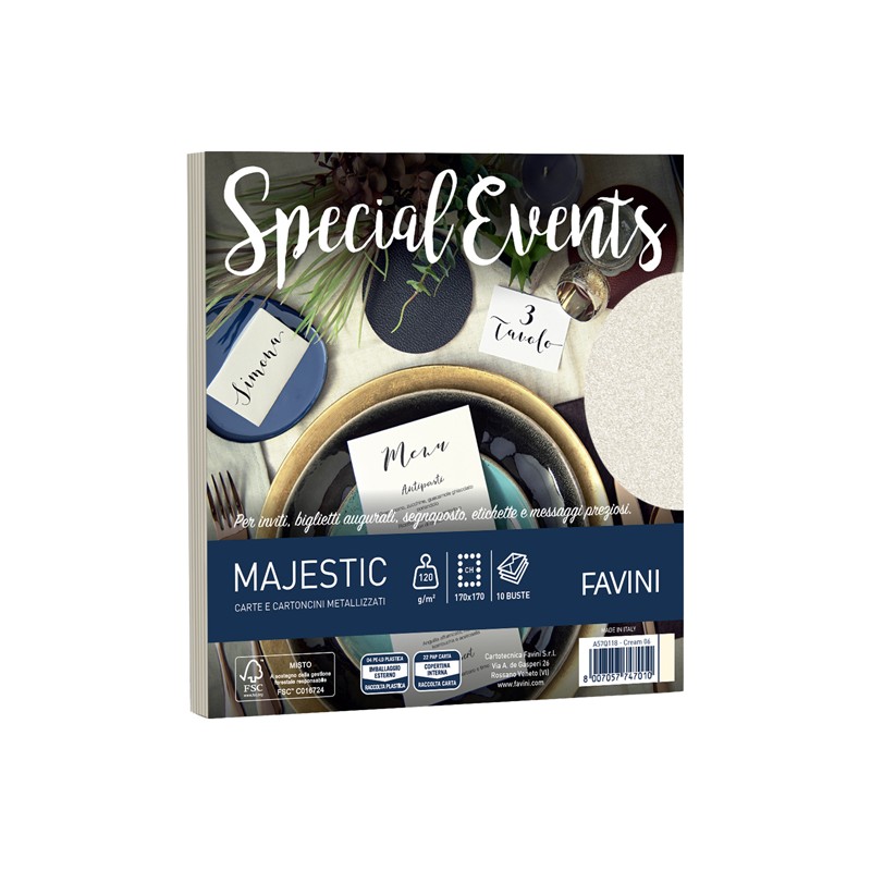 Busta gommata da 120 grammi in carta metallizzata Majestic dai riflessi brillanti e pregiati. Formato 170x170mm. Confezione da 10 buste.
