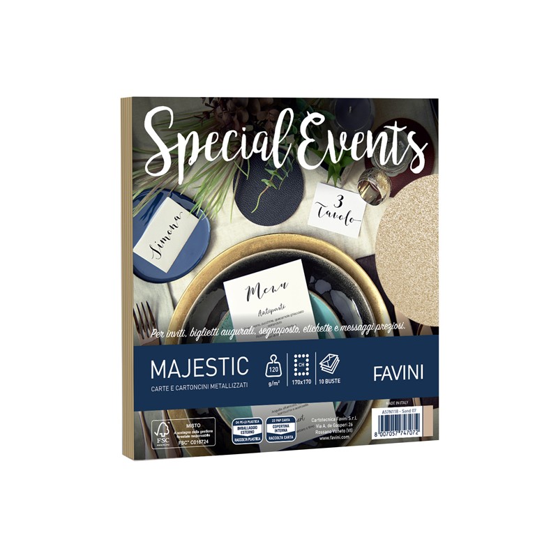 Busta gommata da 120 grammi in carta metallizzata Majestic dai riflessi brillanti e pregiati. Formato 170x170mm. Confezione da 10 buste.