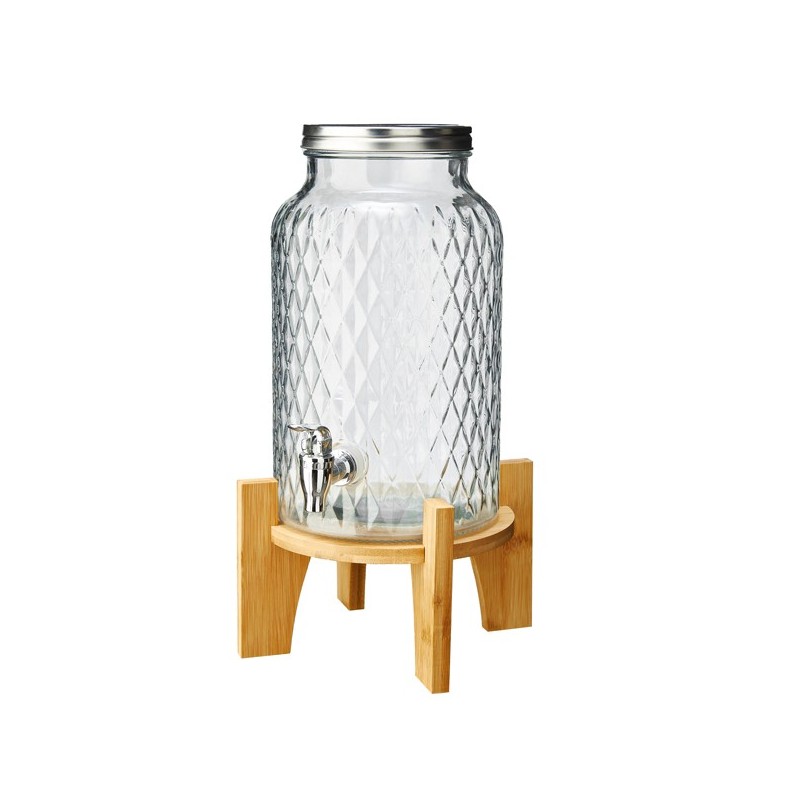 Caraffa in vetro con rubinetto e base in bamboo da 5,6L. Lavabile a mano.