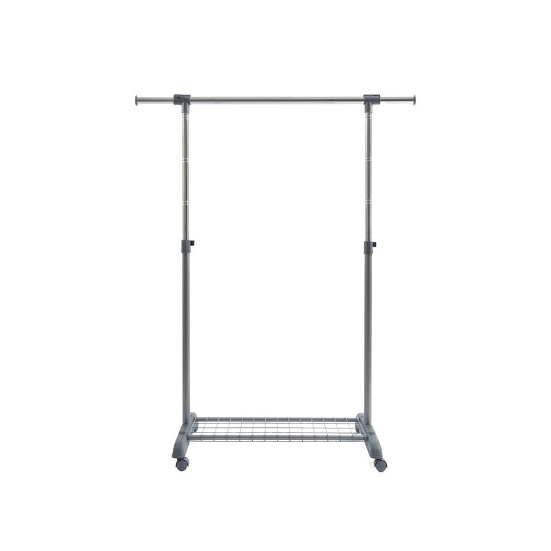 Appendiabiti multiuso facile da trasportare e comodo da usare. Con ampia base di appoggio e tubi estensibili per aumentarne la capacità. Può essere usato come appendiabiti dopo la stiratura, come stendibiancheria per capi ingombranti o in alternativa al classico armadio. Si assembla facilmente senza l'uso di utensili. Dotato di ruote e griglia porta scatole. 1 barra. Misure: base cm 88,3 estensibile fino a cm 138, altezza cm 94 estensibile fino a cm 166.