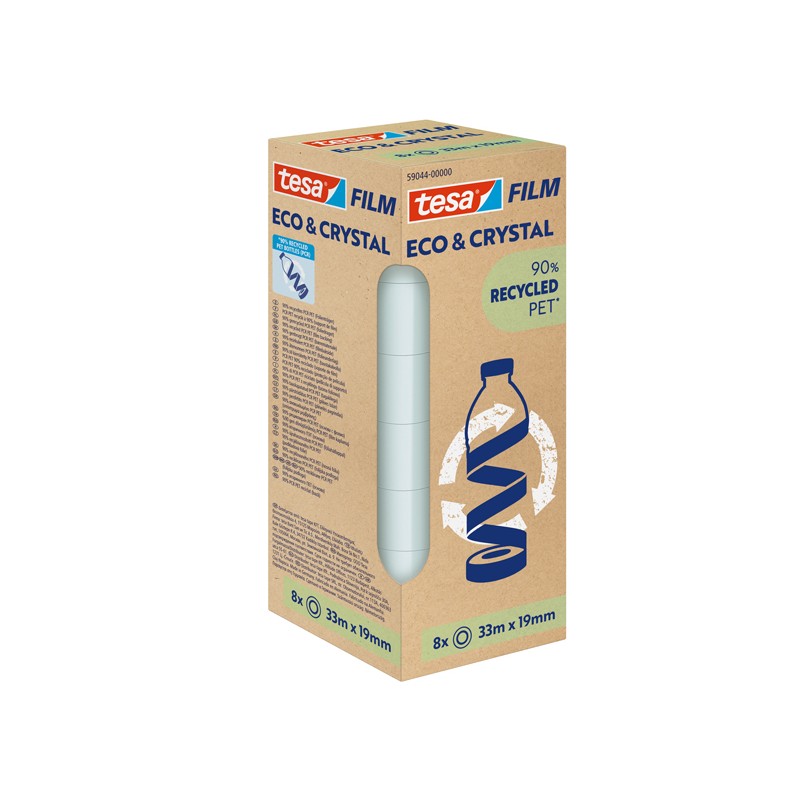 Nastro adesivo Crystal recycled - 19 mm x 33 m - PET - trasparente - Tesa - torre 8 pezzi