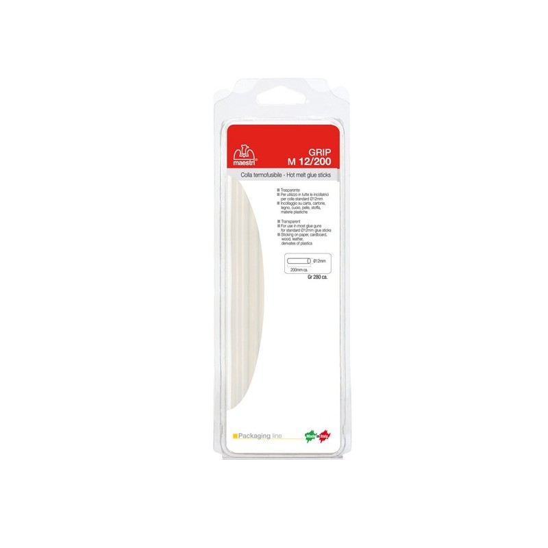 Colla termofusibile trasparente in blister da 10 stecche ° 12mm - l 200mm. Prodotto europeo conforme al regolamento reach (ce) n.1907/2006