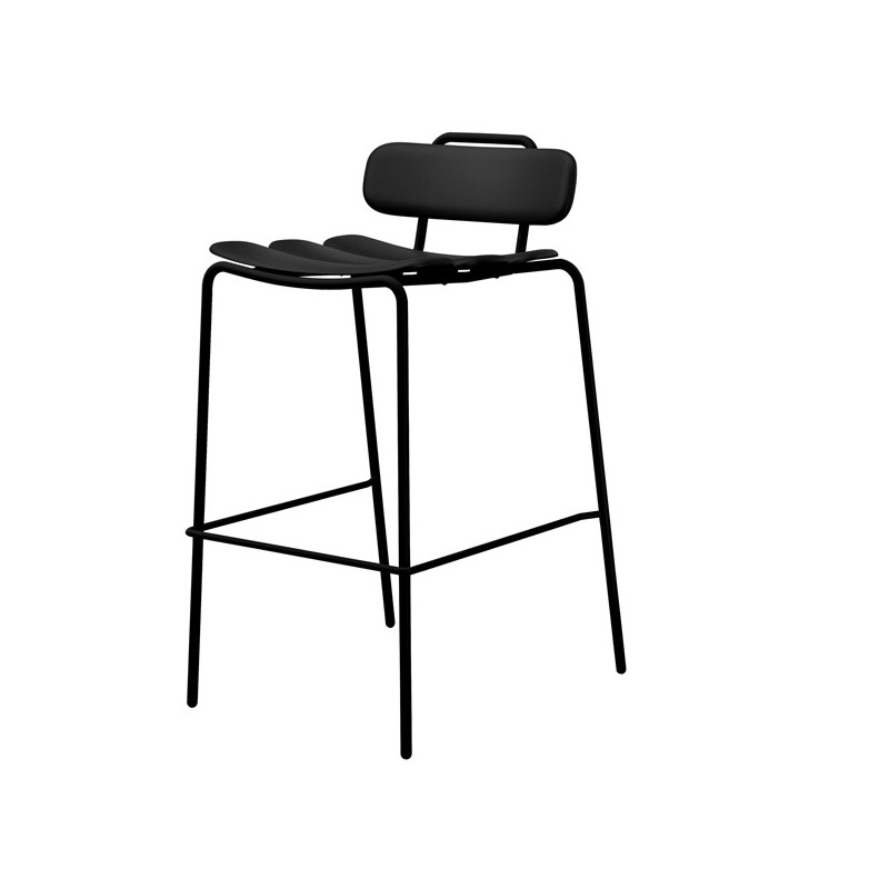 Serie di sedute e sgabelli in PPL fissa con schienale impilabile - struttura in acciaio tubolare sezione ovale e base in acciaio verniciato. Alt.tot.: 101,5cm; Prof.tot.: 58cm; Larg.seduta: 53,5cm; Altezza seduta: 75,5cm