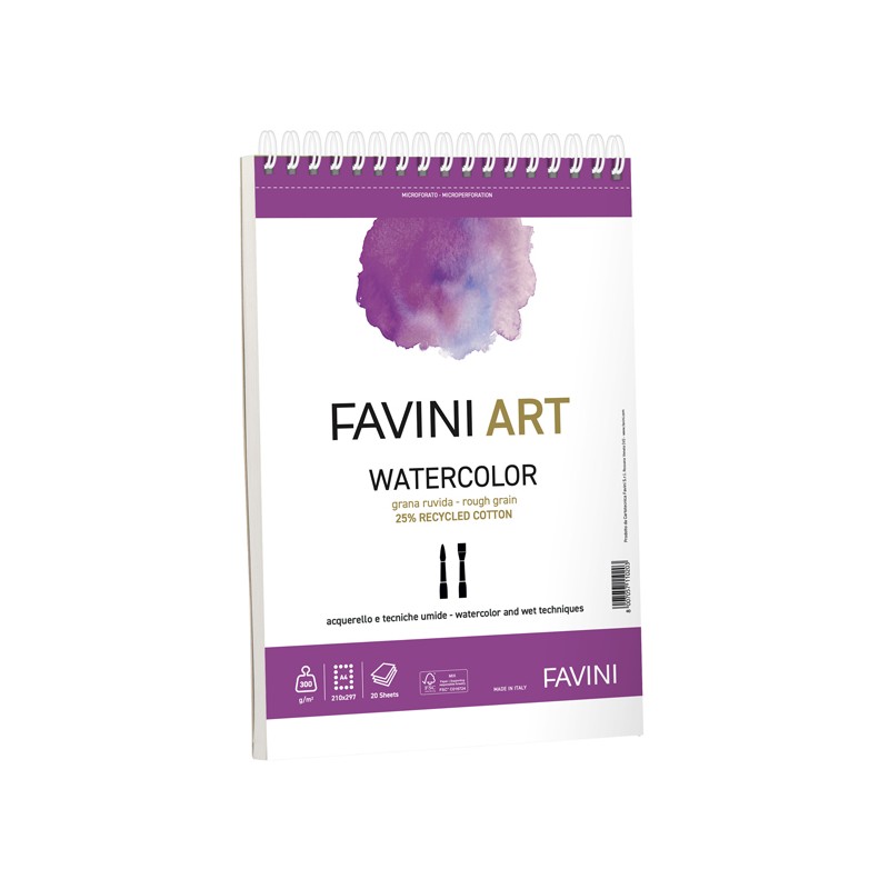 Ideale per acquerello e tecniche di pittura iperumide. Carta resistente ed ecologica, con 25% di cotone riciclato e 75% di fibre di cellulosa .