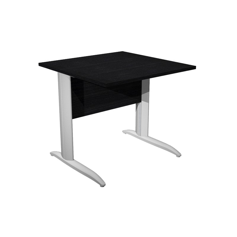Scrivanie con dimensioni conformi alle normative sulla sicurezza dei posti di lavoro in ufficio. Bordatura dei piani in ABS 2mm antishock ed assenza di spigoli vivi. Le scrivanie sono disponibili nella versione con fianchi pannello in melaminico (sp. 22 mm) o con fianchi in metallo ad L verniciati effetto cromo o grigio alluminio RAL 9006, completi di piedini regolabili in altezza e canalina passacavi ispezionabile. Dimensioni: L80 x P80 x H72cm
