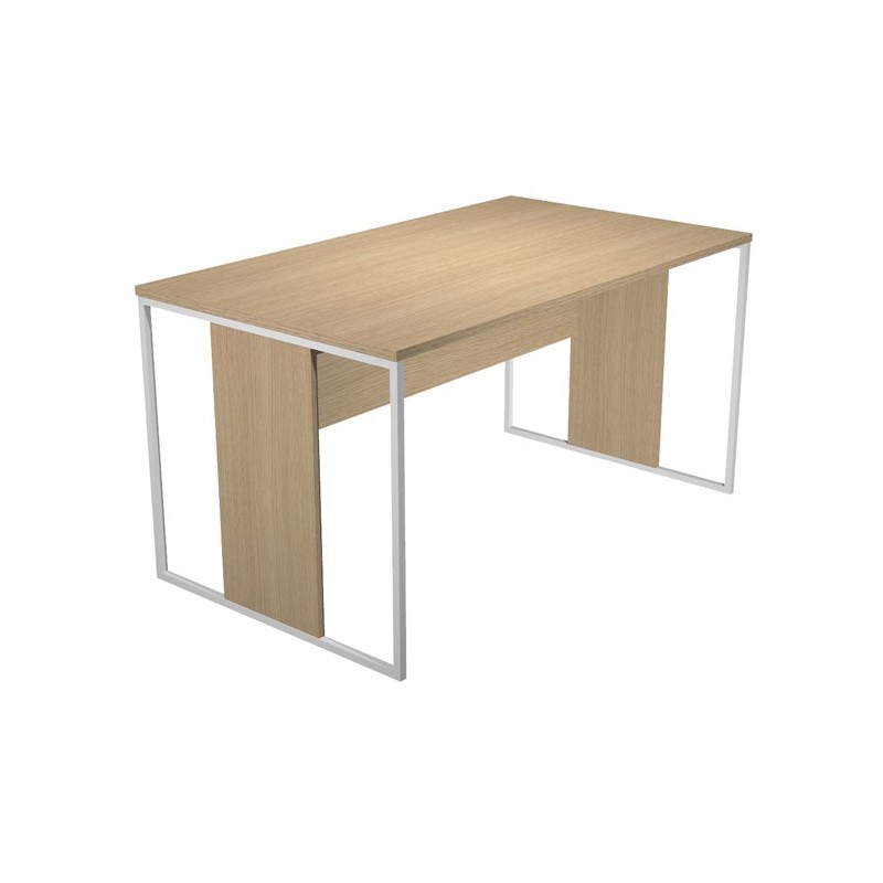 Desktop in melaminico bilaminato sp.22mm con predisposizione per l'alloggiamento di n.2 anelli passacavi opzionali (bordo in ABS sp.22mm) Modesty panel strutturale in melaminico bilaminato H35cm (sp.18mm). Gambe ad anello in metallo a sezione quadrata 20x20mm verniciate a polveri epossidiche complete di piedini regolabili iin altezza e montante strutturale in melaminico bilaminato di lashezza 30cm (spessore 18mm).