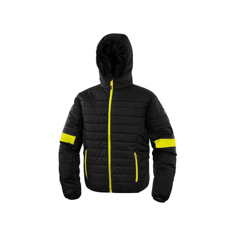 Piumino impermeabile unisex con imbottitura in fibra di poliestere 100% riciclata e tessuto antistrappo Ripstop. Cappuccio fisso e chiusura con zip. 2 tasche esterne con zip e 1 interna. Su ordinazione tutte le taglie da S a 3XL.