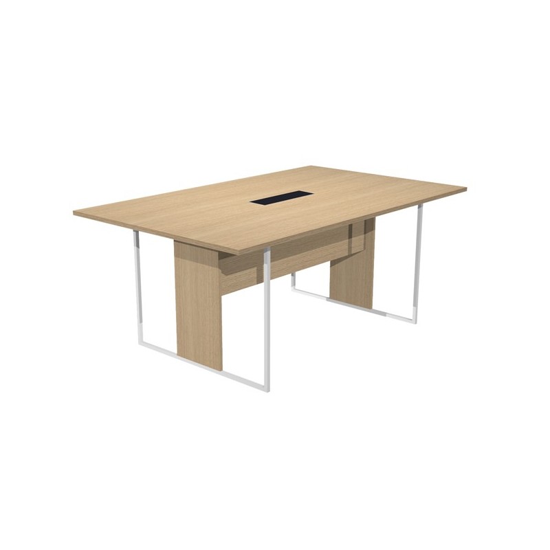 Desktop in melaminico bilaminato sp.22mm. 2 modesty panel strutturali in melaminico bilaminato H35cm (sp.18mm). Gambe ad anello in metallo a sezione quadrata 20x200mm verniciate a polveri epossidiche complete di piedini regolabili in altezza e montante strutturale in melaminico bilaminato di larghezza 30cm (spessore 18mm). Larghezza gamba 90cm. Tavolo riunione con top access L180xP110xH74,4cm