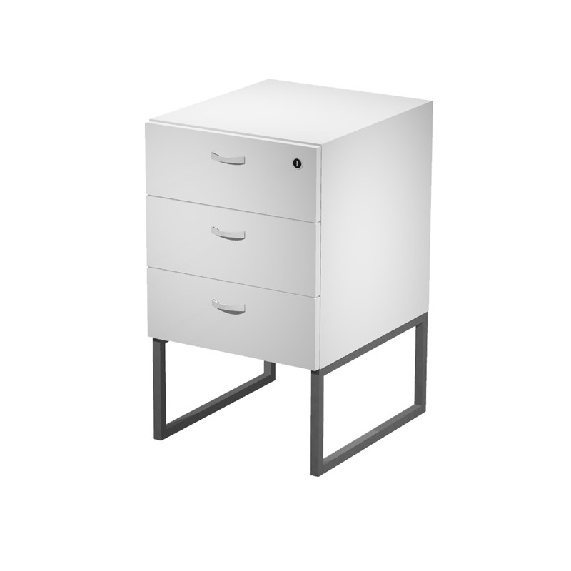Cassettiera a 3 cassetti con serratura sul primo cassetto, guide metalliche con fermo a fine corsa, fornita montata. Con supporto metal. Dimensione: L41,5xP49,5xH57,6cm.
