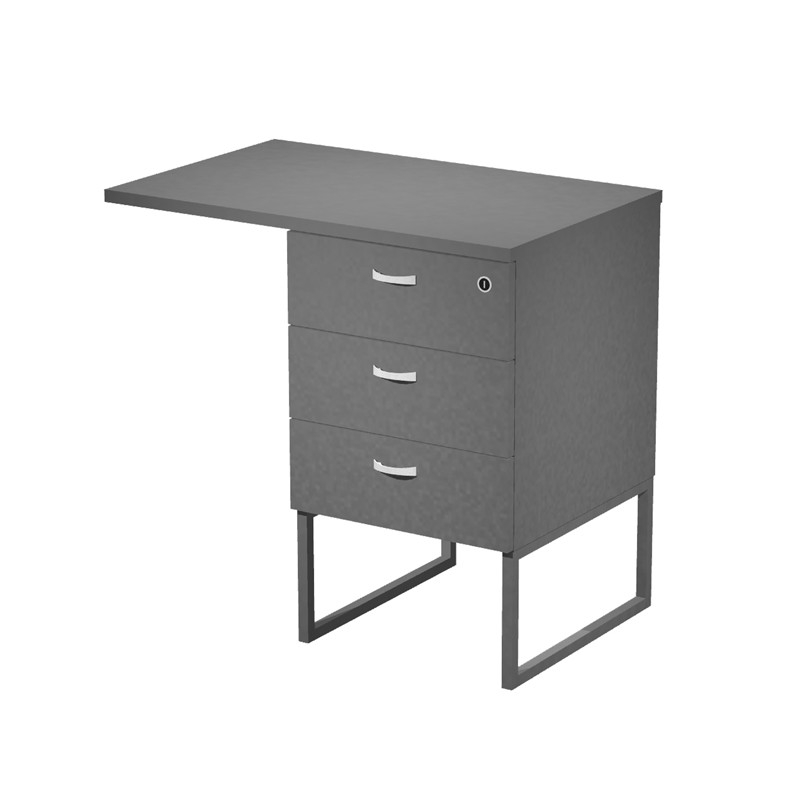 Cassettiera a 3 cassetti con serratura sul primo cassetto, guide metalliche con fermo a fine corsa, fornita montata. Con supporto metal e top,utile per realizzare un allungo laterale destro o sinistro, posizionabile sia parallelamente che perpendicolarmente. Dimensione: 80x50/50X80xH74,4cm.