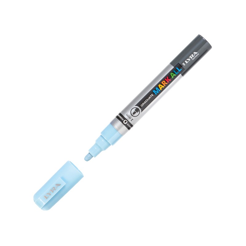 Marcatore indelebile a base d'acqua. Colori brillanti e coprenti. Scrive su carta, plastica, cd, tessuti, vetro, metallo. Non passa la carta. Punta conica in fibra da 2mm.