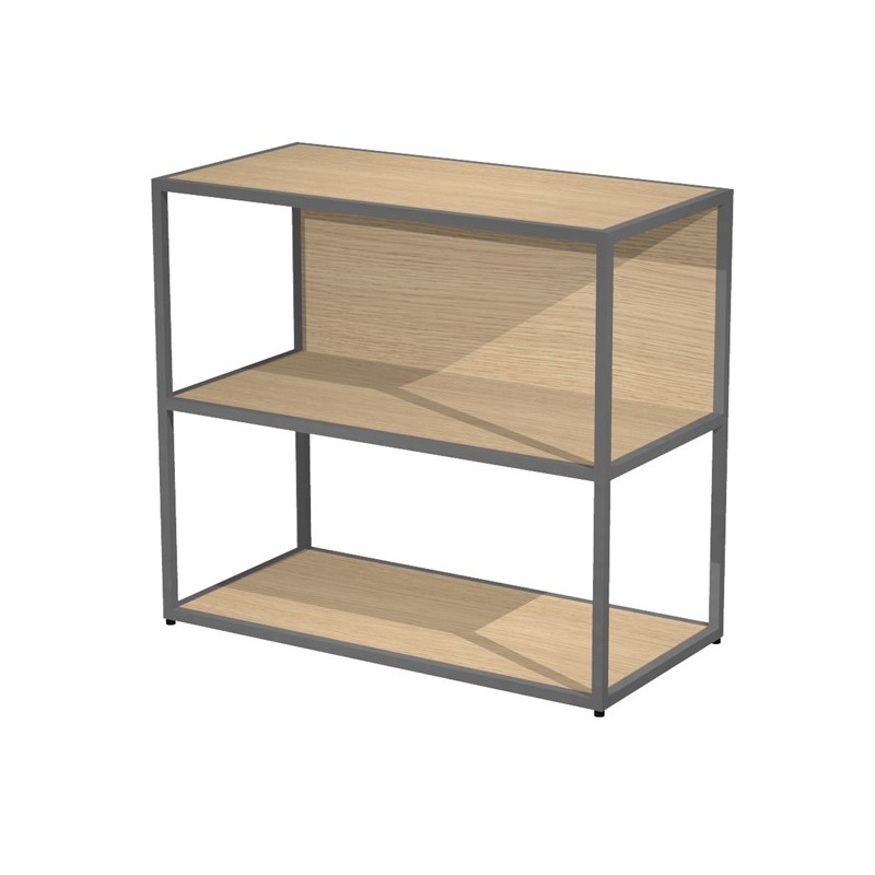 Librerie in metallo con struttura a sezione quadrata 20x20mm verniciate a polvere epossidica. Ripiani, base dietro e top in melaminico (il dietro può essere posizionato a scelta in qualsiasi vano). Le librerie possono essere installate a terra (kit di montaggio compreso con piedini regolabili in altezza) oppure possono essere allestite in sovrapposizione agli armadi). Libreria in metallo a 2 vani con struttura 20x20 mm, a giorno con ripiani, base, cappello e un dietro in melaminico (la schiena in melaminico è riposizionabile a scelta in fase di montaggio) - piedini regolabili in altezza. Dimensioni: 90x44xH80cm.