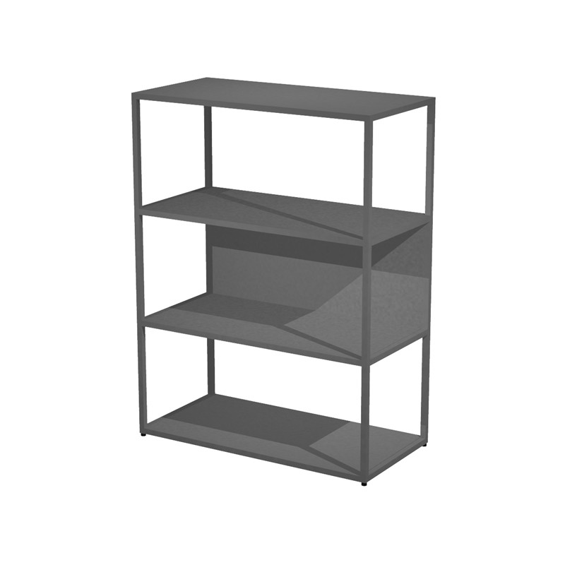 Librerie in metallo con struttura a sezione quadrata 20x20mm verniciate a polvere epossidica. Ripiani, base dietro e top in melaminico (il dietro può essere posizionato a scelta in qualsiasi vano). Le librerie possono essere installate a terra (kit di montaggio compreso con piedini regolabili in altezza) oppure possono essere allestite in sovrapposizione agli armadi). Libreria in metallo a 2 vani con struttura 20x20 mm, a giorno con ripiani, base, cappello e un dietro in melaminico (la schiena in melaminico è riposizionabile a scelta in fase di montaggio) - piedini regolabili in altezza. Dimensioni: 90x44xH119cm.