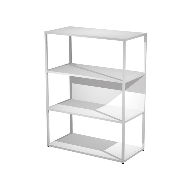Librerie in metallo con struttura a sezione quadrata 20x20mm verniciate a polvere epossidica. Ripiani, base dietro e top in melaminico (il dietro può essere posizionato a scelta in qualsiasi vano). Le librerie possono essere installate a terra (kit di montaggio compreso con piedini regolabili in altezza) oppure possono essere allestite in sovrapposizione agli armadi). Libreria in metallo a 2 vani con struttura 20x20 mm, a giorno con ripiani, base, cappello e un dietro in melaminico (la schiena in melaminico è riposizionabile a scelta in fase di montaggio) - piedini regolabili in altezza. Dimensioni: 90x44xH119cm.