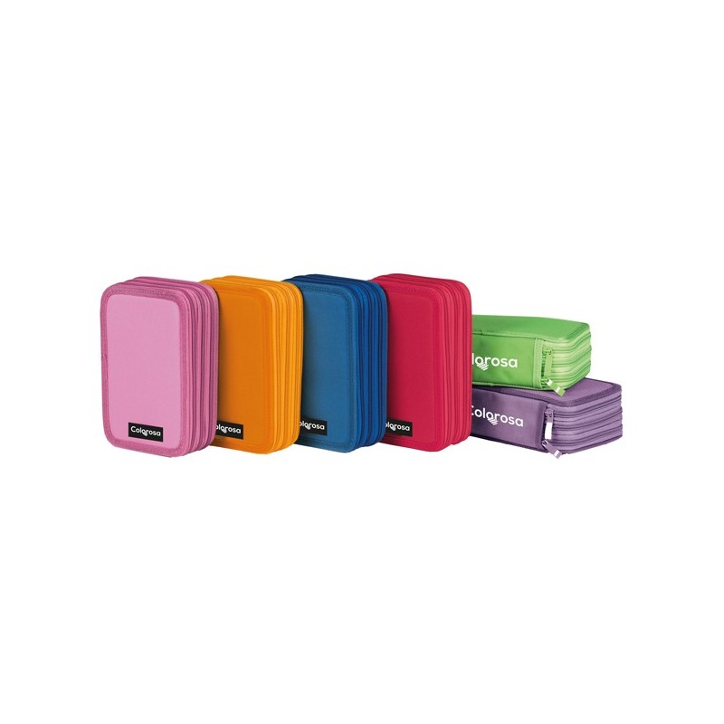 Astuccio 3 zip realizzato in tessuto resistente con bordi rinforzati colorati. L'astuccio contiene: 12 pastelli Giotto laccato, 18 pennarelli Giotto Turbo Color, 2 penne Tratto Fila RN, 1 evidenziatore Giotto Turbo Fluo, 1 matita Temagraph HB2, 1 gomma, 1 temperino, 1 righello trasparente 15cm, 1 paio di forbici, 1 orario scolastico.