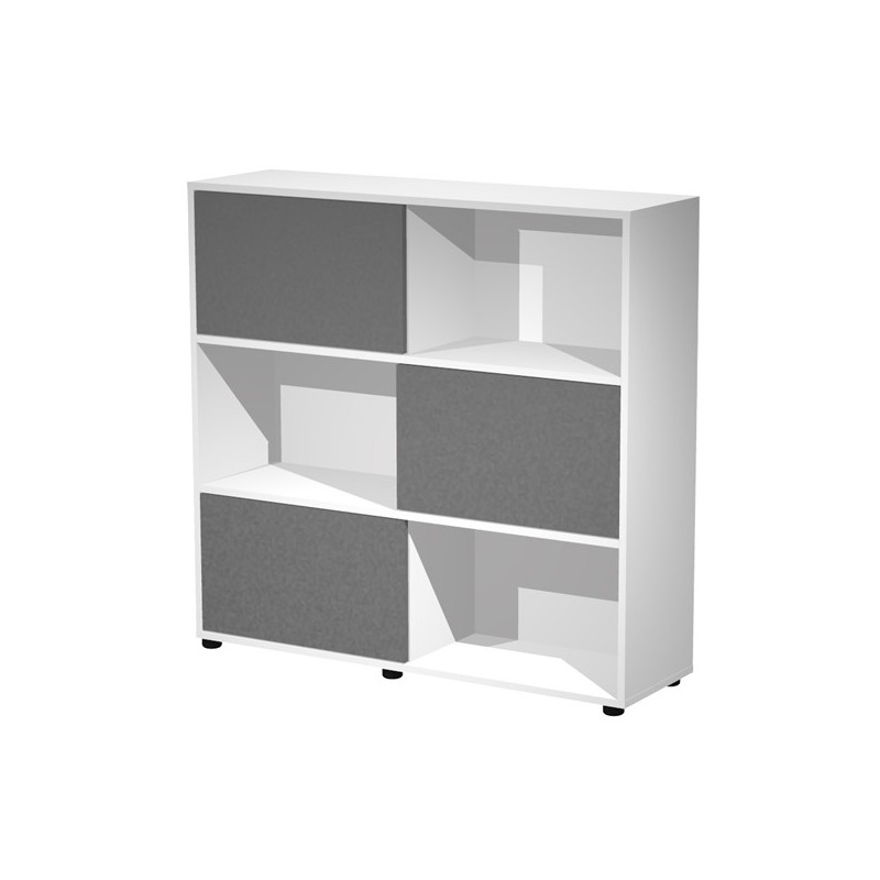 Sistema di librerie ad ante scorrevoli completo di un modulo alto a 5 ante, medio a 3 ante e basso a 3 ante. Ideale per arredare con stile e funzionaità ambienti diversi, da quelli aziendali a quelli domestici. Materiale bilaminato nobilitato melaminico antiriflesso e antigraffio.