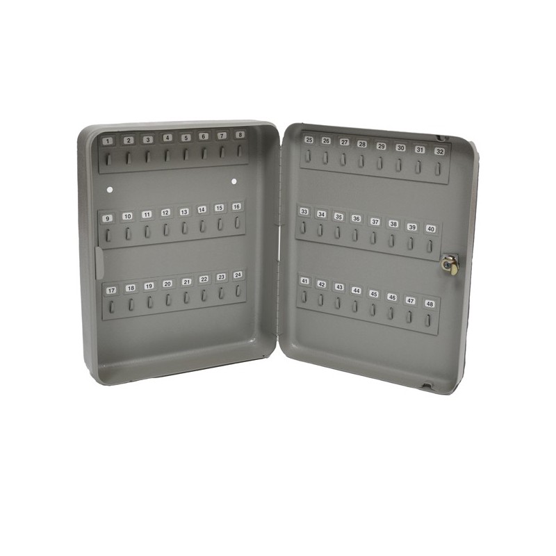 CASSETTA PORTACHIAVI IN LAMIERA VERNICIATA A POLVERE EPOSSIDICA grigio antracite. Fori per il fissaggio al muro sul retro ed anche in dotazione nr. 2 fischer+ 2 viti + numerini adesivi. SERRATURA A CHIAVE CIFRATA.