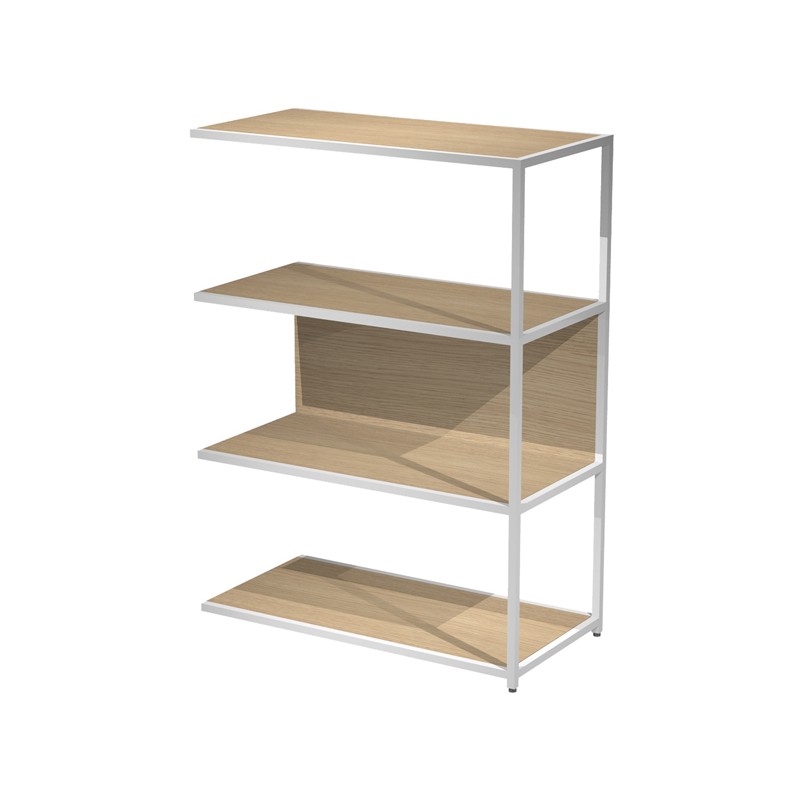 Modulo aggiuntivo per libreria Modular. Struttura in metallo sezione 20x20 mm. Altezza vano ripiani 370 mm, dietro assemblabile in qualsiasi vano fronte/retro (bifacciale).