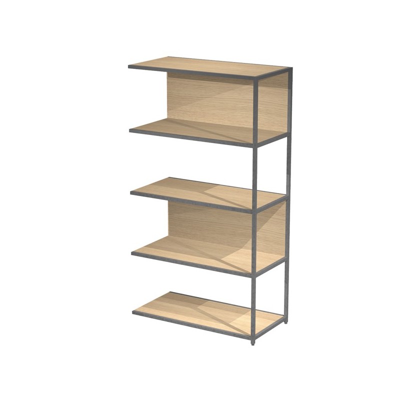 Modulo aggiuntivo per libreria Modular. Struttura in metallo sezione 20x20 mm. Altezza vano ripiani 370 mm, dietro assemblabile in qualsiasi vano fronte/retro (bifacciale).