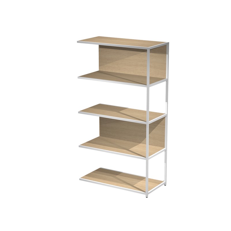 Modulo aggiuntivo per libreria Modular. Struttura in metallo sezione 20x20 mm. Altezza vano ripiani 370 mm, dietro assemblabile in qualsiasi vano fronte/retro (bifacciale).