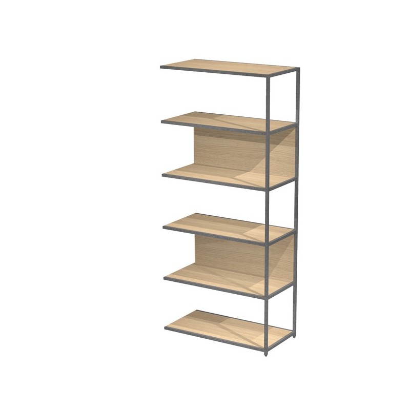 Modulo aggiuntivo per libreria Modular. Struttura in metallo sezione 20x20 mm. Altezza vano ripiani 370 mm, dietro assemblabile in qualsiasi vano fronte/retro (bifacciale).