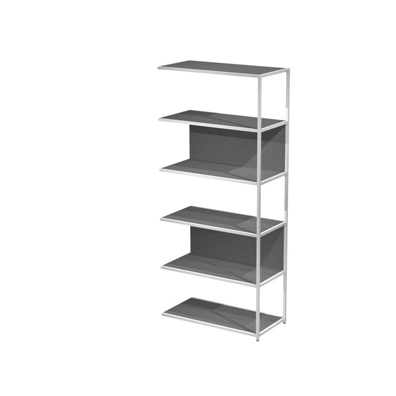 Modulo aggiuntivo per libreria Modular. Struttura in metallo sezione 20x20 mm. Altezza vano ripiani 370 mm, dietro assemblabile in qualsiasi vano fronte/retro (bifacciale).