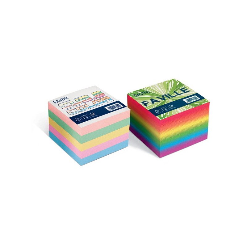 Cubi di foglietti di carta 95x95mm per appunti veloci. 750 fogli da 80gr. Colore: mix colori soft.