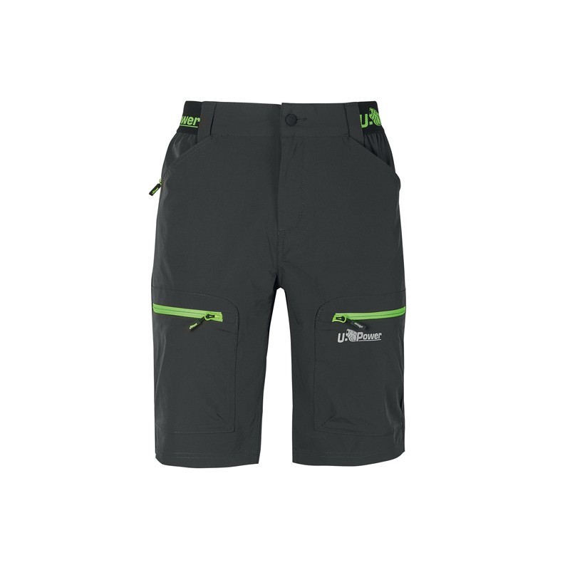 Bermuda Slim-Fit in tessuto U-4 Way Stretch resistente e morbido sulla pelle con triple cuciture. Dotato di due ampie tasche anteriori, elastico in vita con regolazione a scomparsa. Chiusura centrale con zip e bottone gommato antigraffio. Carrè posteriore accentuato per una maggior protezione della parte lombare e nastro reflex su passante tubolare posteriore. Tasca laterale porta utensili, due tasche posteriori di cui una con pattina e una con chiusura di sicurezza a velcro. Con tasca multifunzionale con porta badge a scomparsa. Tessuto idrorepellente, traspirante e ad asciugatura rapida. Su ordinazione tutte le taglie da XS a 5XL.
